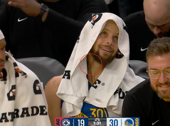 开场脖子就被抓伤!库里:我也不知道谁抓的,实际上也没多疼